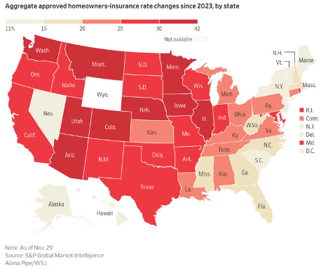 Higher home-insurance rates are here to stay, while homeowners in many areas face an increasing risk of nonrenewals, reduced coverage and expensive policy conditions, from paying for a new roof to cutting down trees. For tens of millions of Americans, home insurance will never be the same, insurers and analysts say. To account for the changes, insurers are increasingly penalizing storm-prone areas in Texas and Colorado, as well as Midwestern states such as Illinois, Iowa, Michigan, Minnesota and Wisconsin, analysts said. Eye-watering premiums and coverage cancellations, once largely confined to the troubled markets of Florida, Louisiana and California, are spreading.