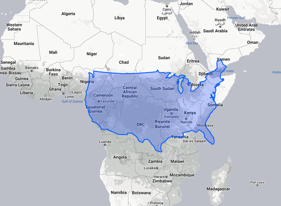 Seriously, the skinnier part of Africa is the size of the US? Yep: