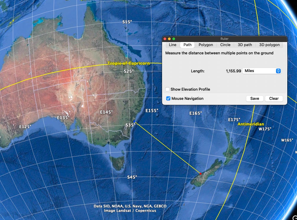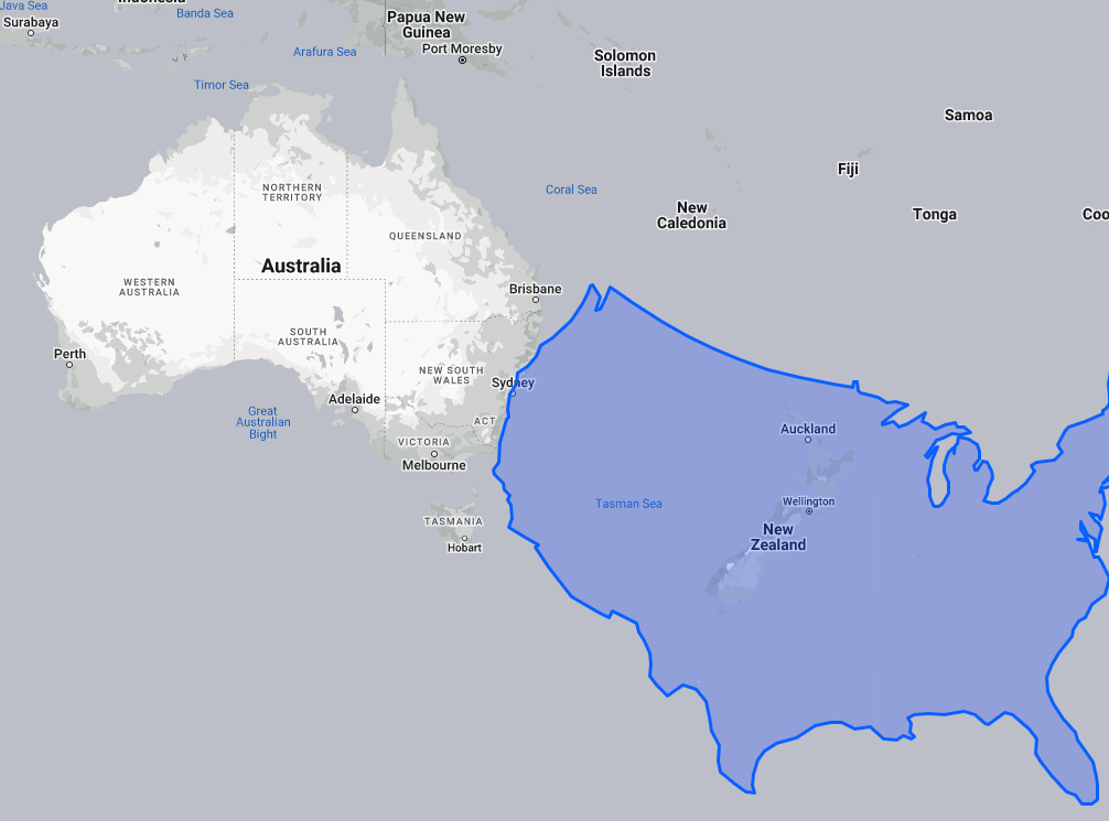 Also note that the distance from Australia to New Zealand is much farther than you probably thought—New Zealand is not sitting “just off” of Australia:
