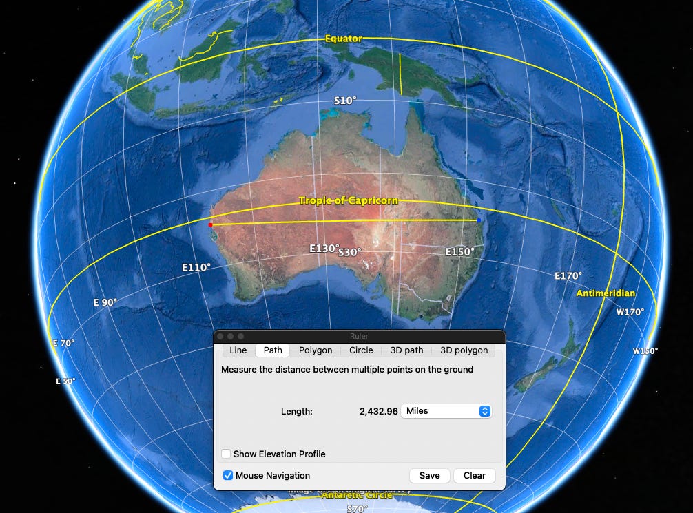 As for the distance between Australia and South America, this one isn’t quite as clear. Depending one where you measure to/from, the distances between Australia and South America vary—at their southernmost tips, they are 5,000 miles apart, while near the Tropic of Capricorn, they are nearly 8,000 miles apart. And when I say “nearly,” I actually mean 7,800…but that’s close enough for our bar math.