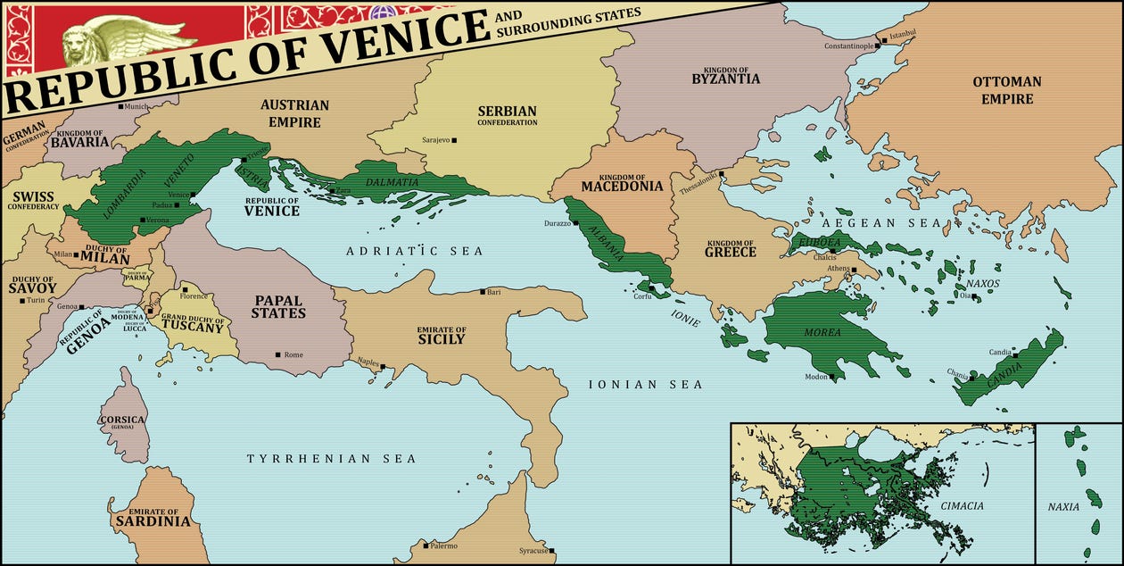 It was amazing to see the Venetian impact along some of the coastal towns—I had no idea how far the Venetian Republic reached (note, map is turned sideways).