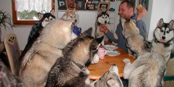 You feed your AUSTRIAN (Austria) Husky dogs that are HUNGRY (Hungry)