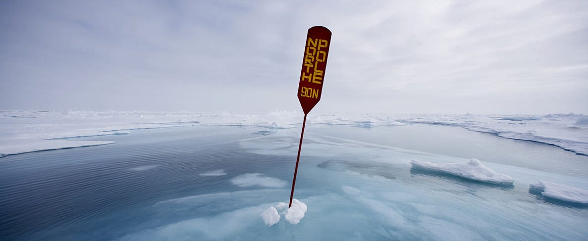 Then you reach the NORTH Pole on a massive sheet of ice (North Macedonia).