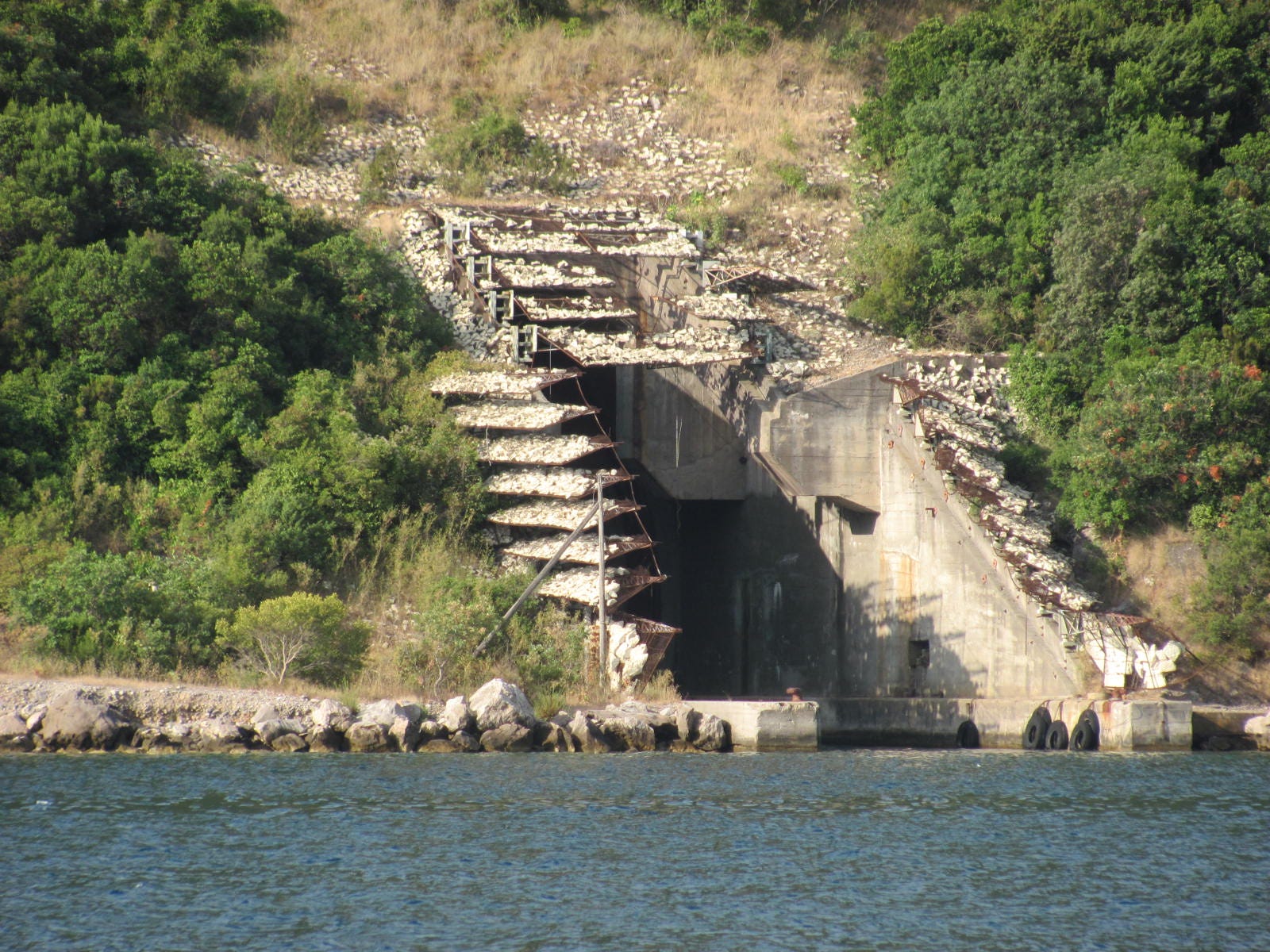 The Soviet-era submarine bunkers still viewable in the Bay of Kotor, Montenegro. Also, Kotor is an incredibly beautiful city!