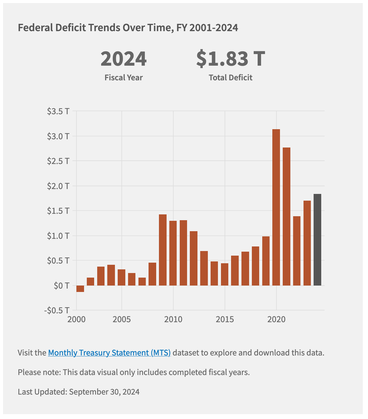 As you can see, the last time we had a surplus was in 2001. Ever since then we’ve had a deficit.