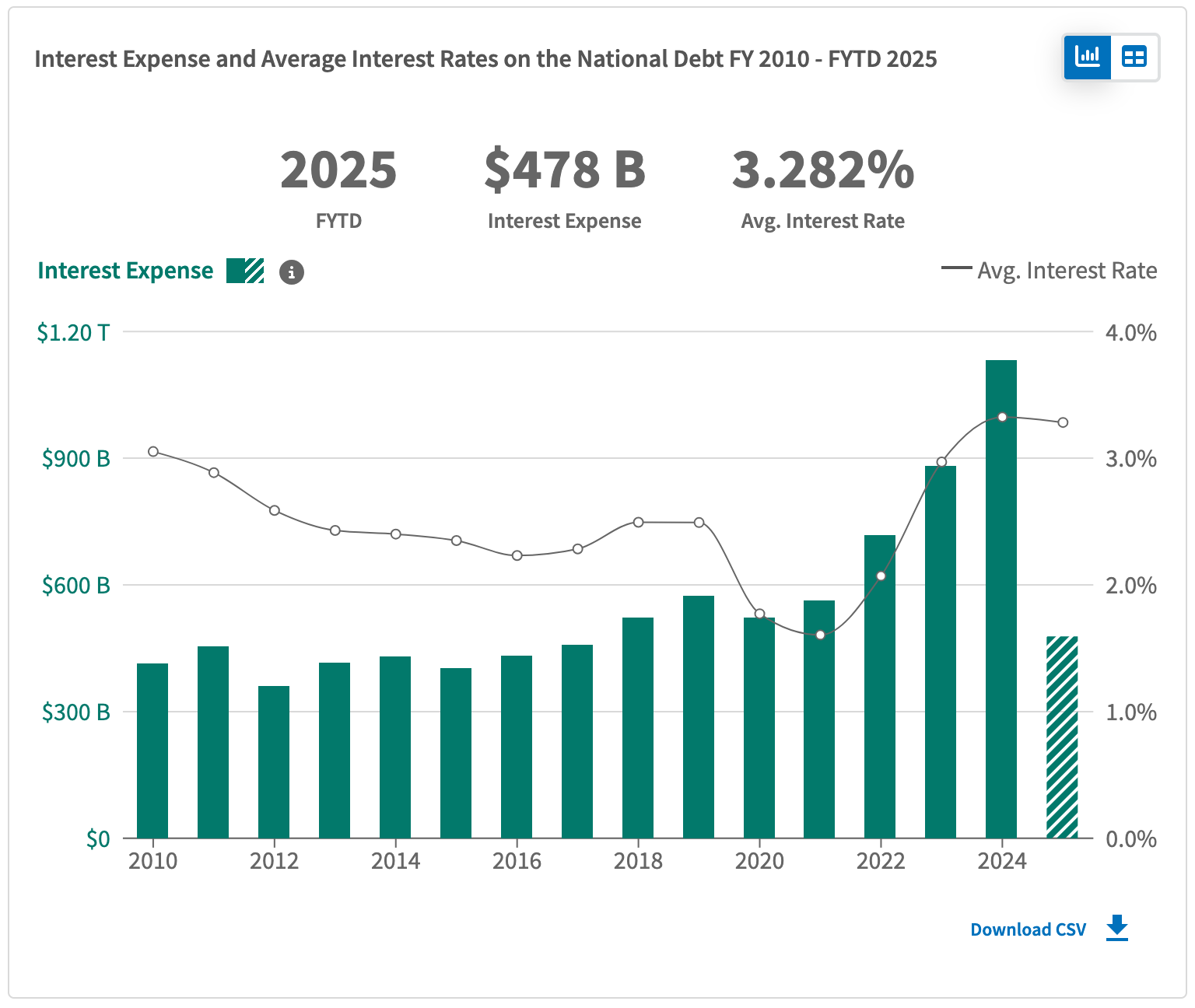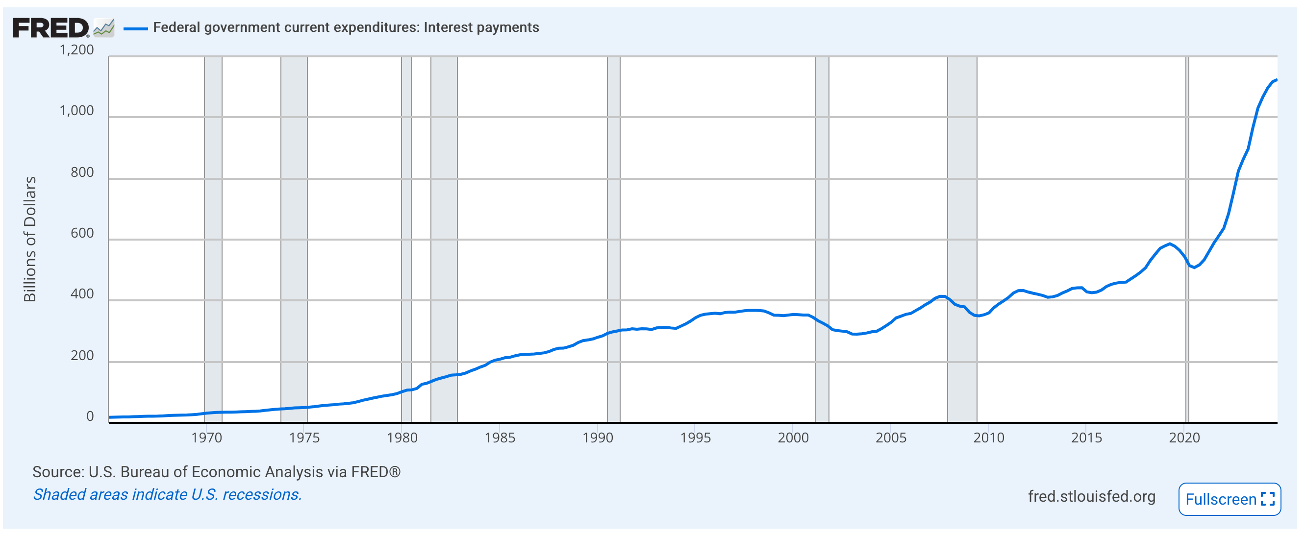 And as the debt added up, the interest payments on that debt began to increase:
