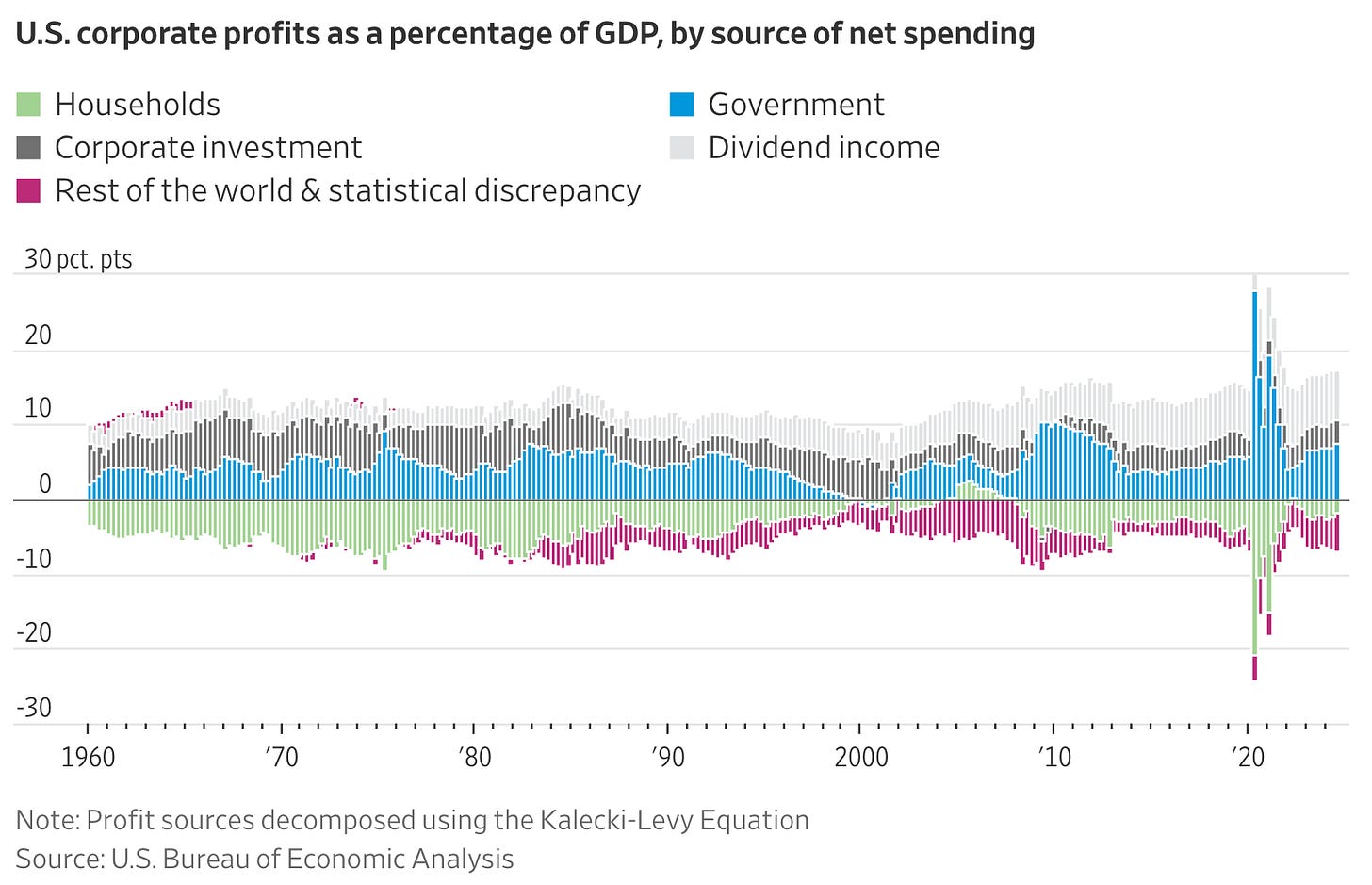 It is true that U.S. profit margins recently rising to near-historic highs has a lot to do with the government. An analysis of official figures suggests that almost 60% of the corporate earnings generated between 2022 and the third quarter of 2024 can be attributed to public-sector spending and investment.