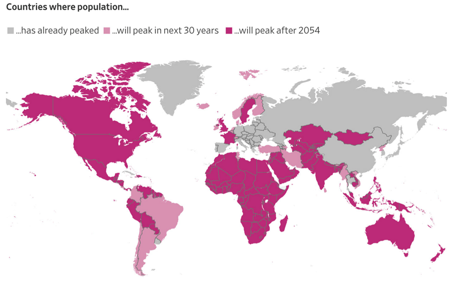 Earth’s population should peak before the end of the century (WSJ🔒) 📊
