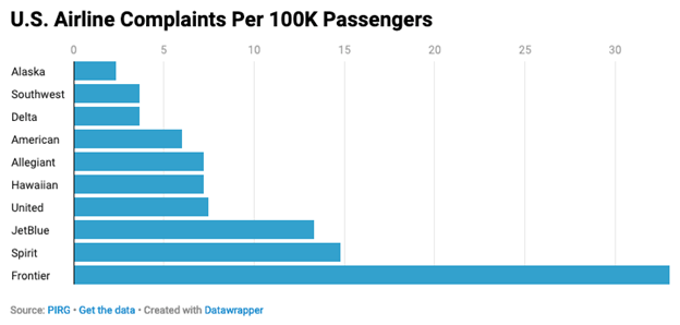 Frontier ranked worst airline for complaints in 2023 (Forbes🔒) 📊
