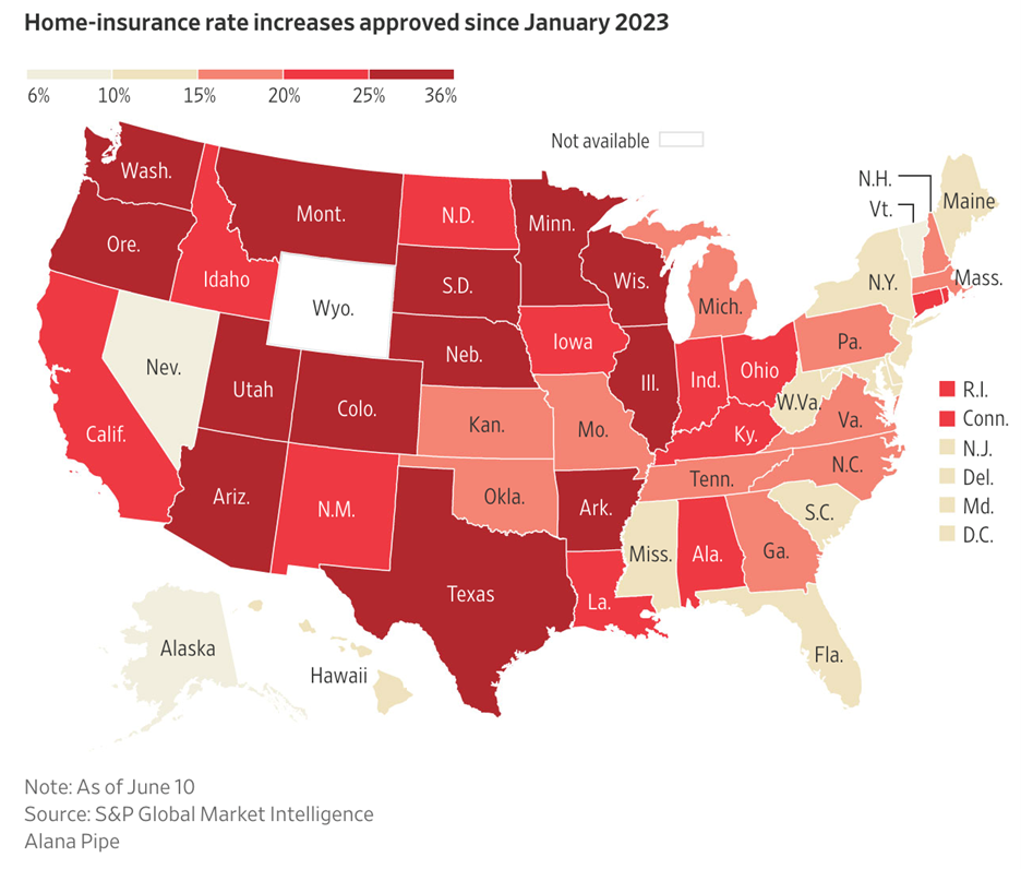 Home insurance premiums are surging—and states are allowing it (WSJ🔒) 📊