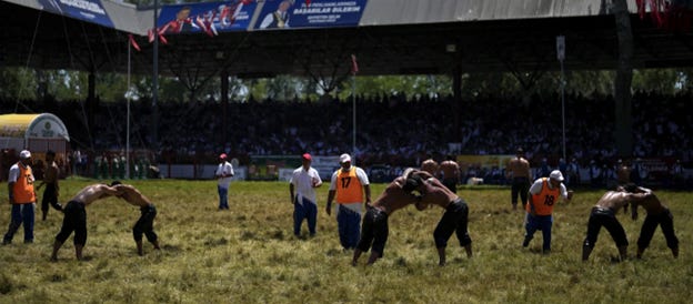 AP PHOTOS: Oil wrestlers battle for the title in a more than 600-year-old competition in Turkey (AP) 📊