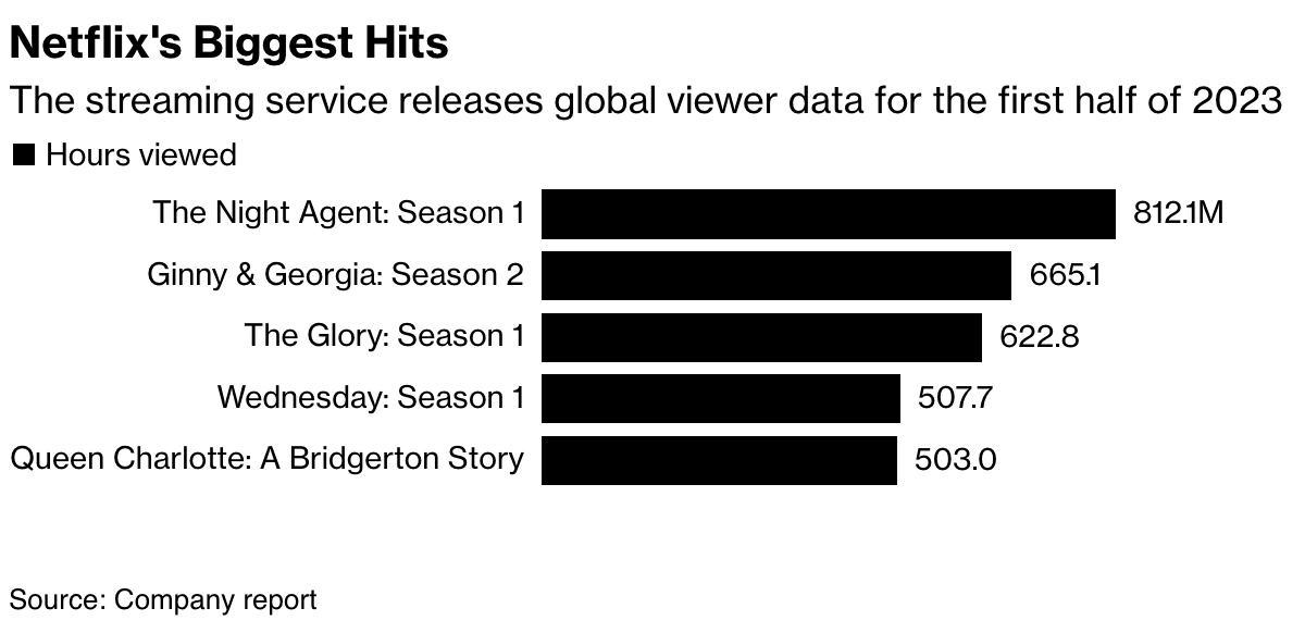 Netflix Inc. is ready to tell the world how many people watch its shows. On Tuesday, the company released global midyear viewer data for every title on its service, the first of what Netflix said will be regular reports. The political thriller The Night Agent was the most-watched title globally in the first half of 2023, generating 812.1 million hours of viewing, Netflix said. That was followed by Season 2 of the family drama Ginny & Georgia and the debut of The Glory, a South Korean series. Ginny & Georgia delivered the biggest audience if you consider all seasons of a show.