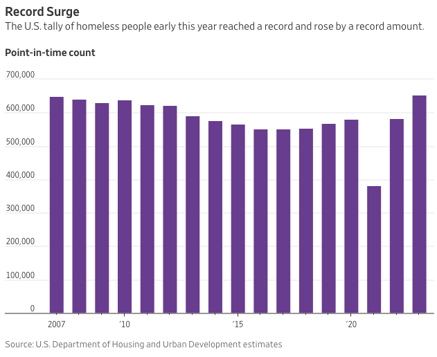 U.S. Homeless Count Surges 12% to Highest-Recorded Level (WSJ🔒)📊