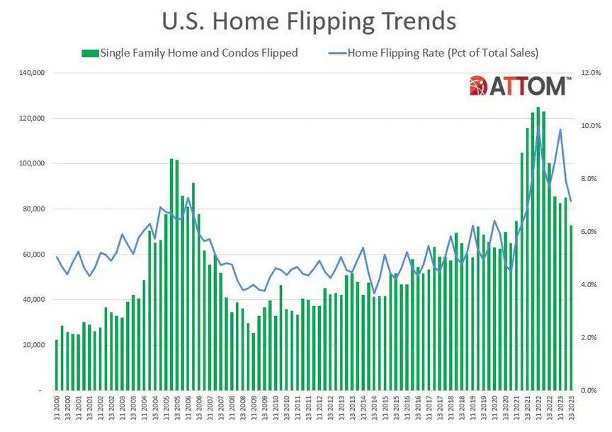 Home Flipping Activity Keeps Falling While Investor Profits Keep Rising Across U.S. In Third Quarter Of 2023 (Attom) 📊