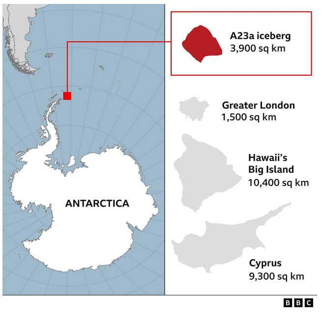 A23a: Monster iceberg just shy of a trillion tonnes (BBC)📊