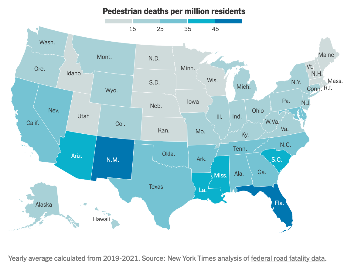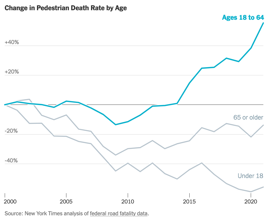 Why Are So Many American Pedestrians Dying at Night? (NYT🔒)📊