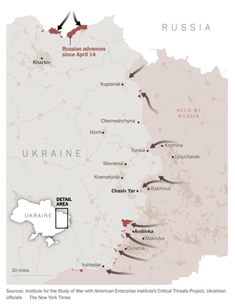 All of a sudden, Russian forces are making progress in many directions at once. In recent days, Russian troops have surged across the border from the north and opened a new line of attack near Kharkiv, Ukraine’s second-largest city, capturing settlements and villages and forcing thousands of civilians to flee.