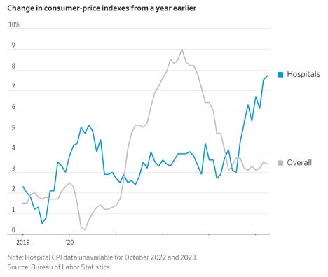 Surging Hospital Prices Are Helping Keep Inflation High (WSJ🔒) 📊