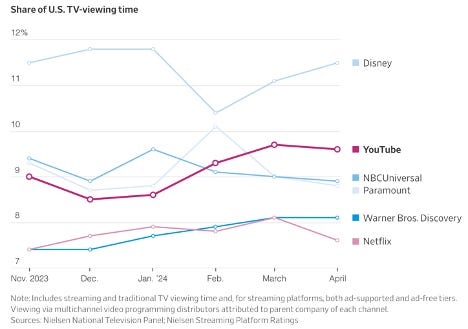 What’s on TV? For Many Americans, It’s Now YouTube (WSJ🔒)