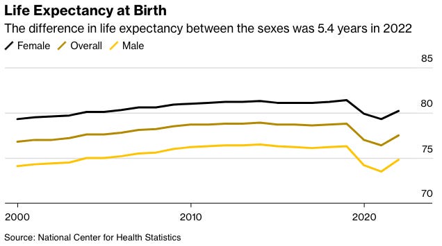 US Life Expectancy Improved in 2022, Rebounding from Covid Lows (Bloomberg🔒)