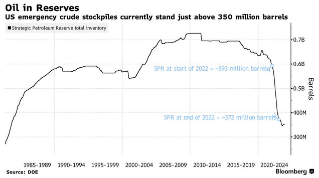How Shell, Chevron Are Delaying US Efforts to Refill Its Emergency Oil Reserve (Bloomberg🔒) 📊