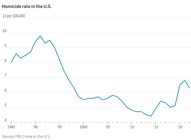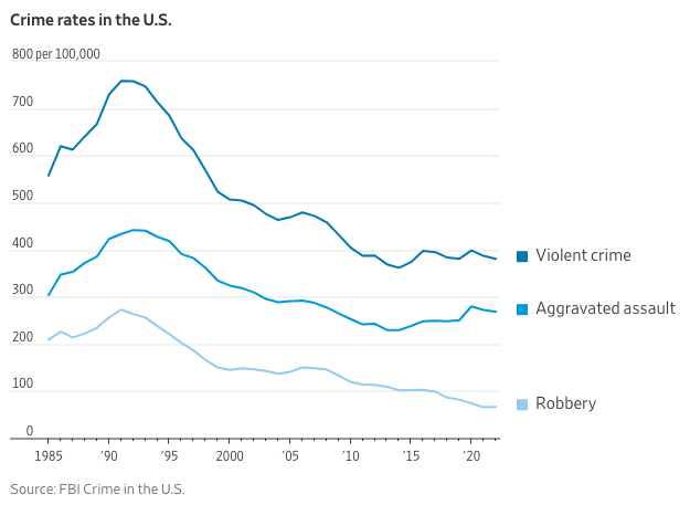 Violent Crime Is Down. Here’s Why More People Feel Victimized. (WSJ🔒) 📊