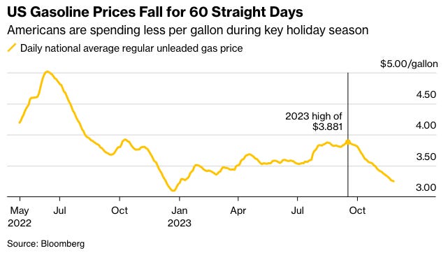 US Gasoline Prices Fall for 60 Straight Days in Win for US Holiday Spending (Bloomberg🔒) 📊