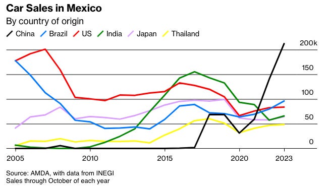 Chinese Car Companies Cracked North America by Going to Mexico (Bloomberg🔒) 📊