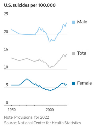 U.S. Suicides Reached a Record High Last Year (WSJ🔒)