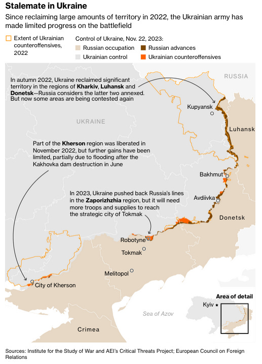 Kyiv’s Harsh Winter Deepens Gloom Over Battlefield Failures (Bloomberg🔒) 📊