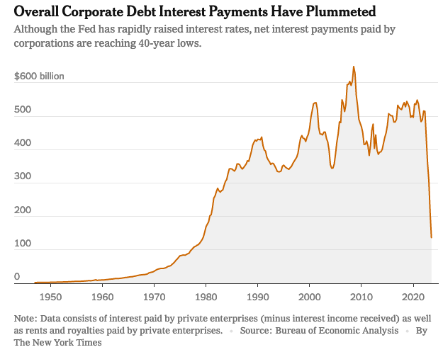 Corporate America Has Dodged the Damage of High Rates. For Now. (NYT🔒)