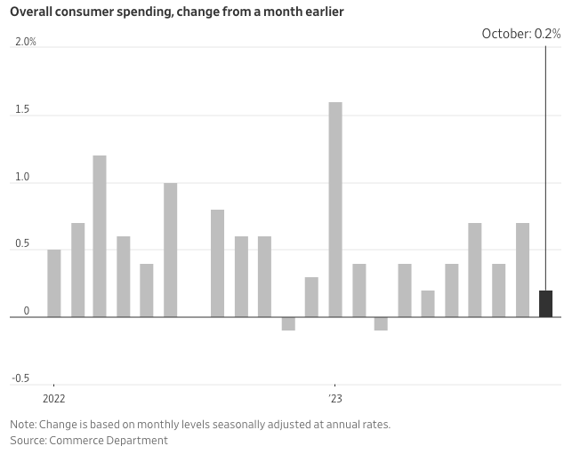 Consumers Pulled Back on Spending, Inflation Eased in October (WSJ🔒) 📊
