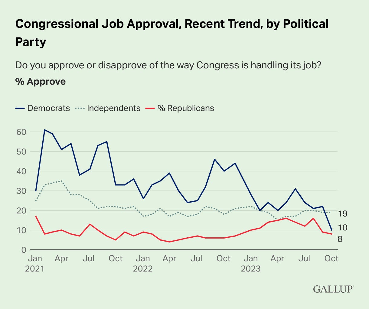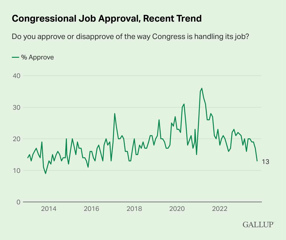 Congress' Job Approval Drops to 13%, Lowest Since 2017 (Gallup) 📊