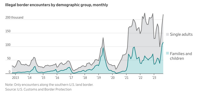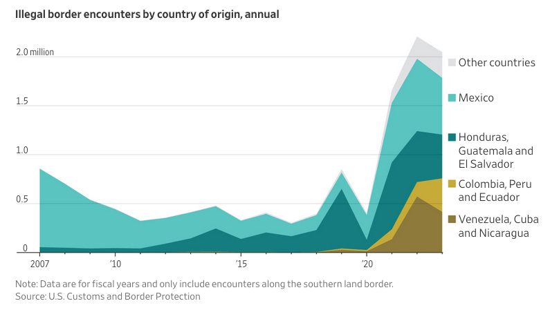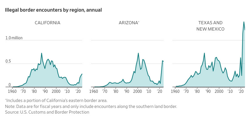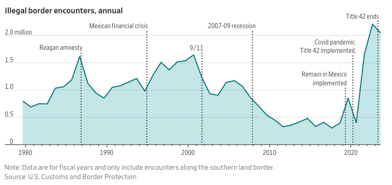 Illegal Immigration Is a Bigger Problem Than Ever. These Five Charts Explain Why. (WSJ🔒) 📊