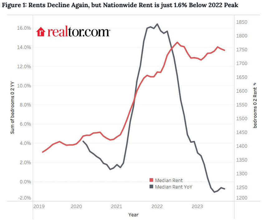 September 2023 Rental Report: Rent Prices Fall for Fifth Consecutive Month Amid Strong Demand for Affordable Units (Realtor.com) 📊