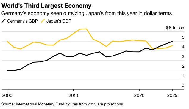 Germany to Pass Japan as Third-Largest Economy, Helped by Weak Yen (Bloomberg🔒) 📊