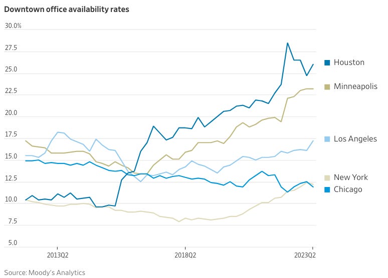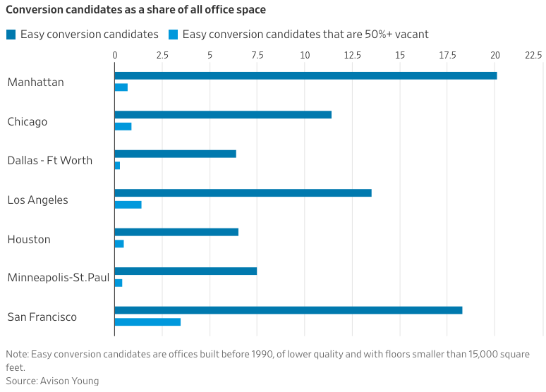 America’s Downtowns Are Empty. Fixing Them Will Be Expensive. (WSJ🔒) 📊