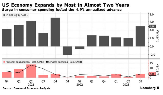 US Economy Grew at a 4.9% Pace Last Quarter, Fastest Since 2021 (Bloomberg🔒) 📊