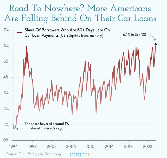 Car Owners Fall Behind on Payments at Highest Rate on Record (Bloomberg🔒) 📊