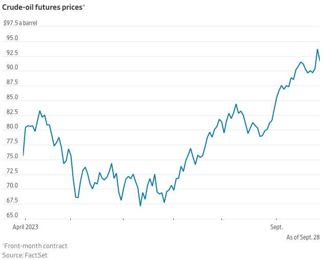 U.S. oil prices soared Wednesday to their highest level in more than a year. Most frackers plan to stay on the sidelines. Surging global demand coupled with output cuts by Saudi Arabia and Russia have sent crude prices to levels not seen since last August. The increase is hitting consumers at the pump, vexing policy makers’ fight against inflation and posing new challenges for President Biden ahead of the 2024 election. Though some analysts say oil prices could soon hit $100 a barrel, U.S. shale companies aren’t rushing to drill more. That means that unlike in past years when frackers flooded the market with crude and alleviated pressure, oil prices might remain elevated until someone else adds production or demand ebbs. In the Permian Basin of New Mexico and West Texas, the most active oil field in the nation, the number of rigs drilling for crude as of last week had declined by about 12% to 314 since the end of April, according to oil field services company Baker Hughes—even as U.S. oil prices jumped by about $13 a barrel over that same period.