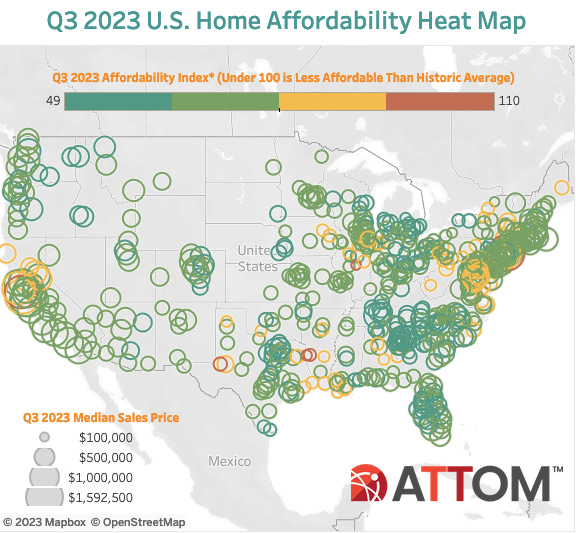 Home Affordability Gets Even Tougher Across U.S. During Third Quarter As Home Prices And Mortgage Rates Rise Further (ATTOM)