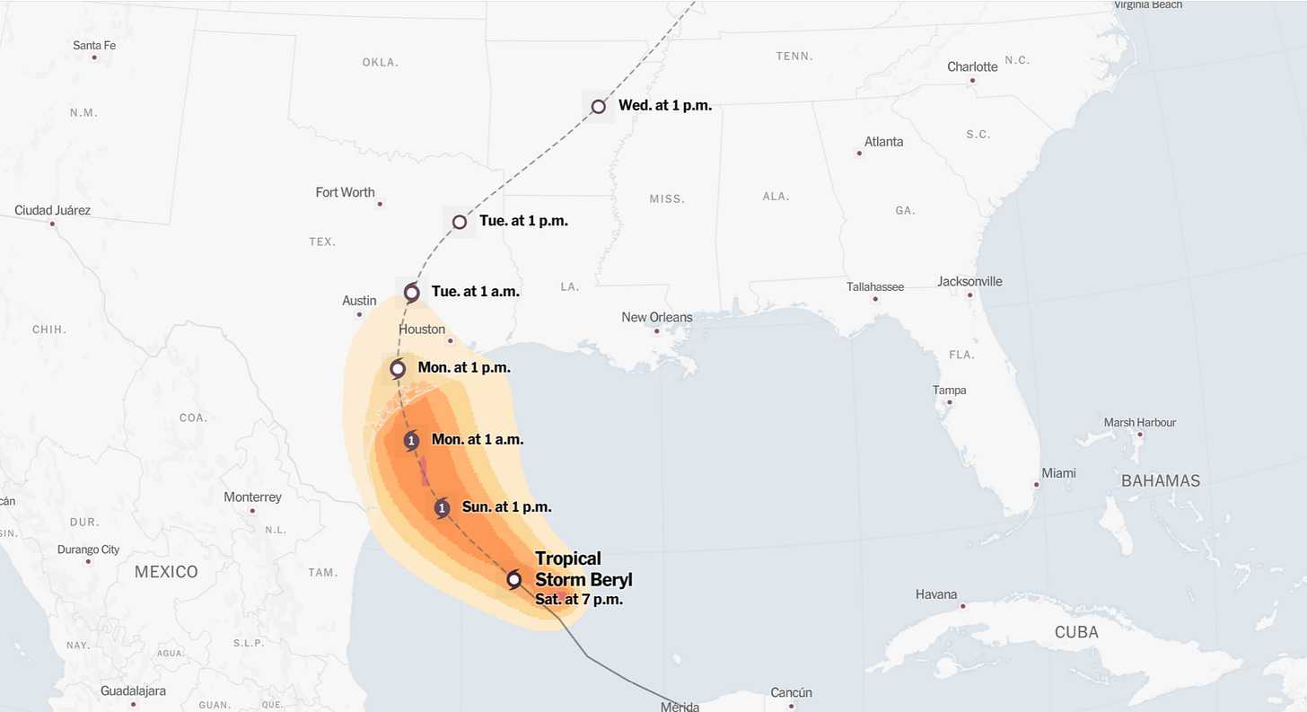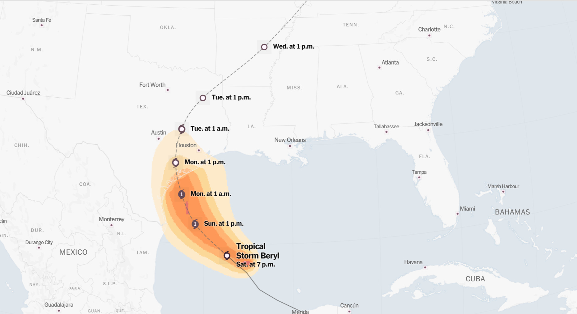 Hurricane Beryl Tracker (NYT🔒) 📊