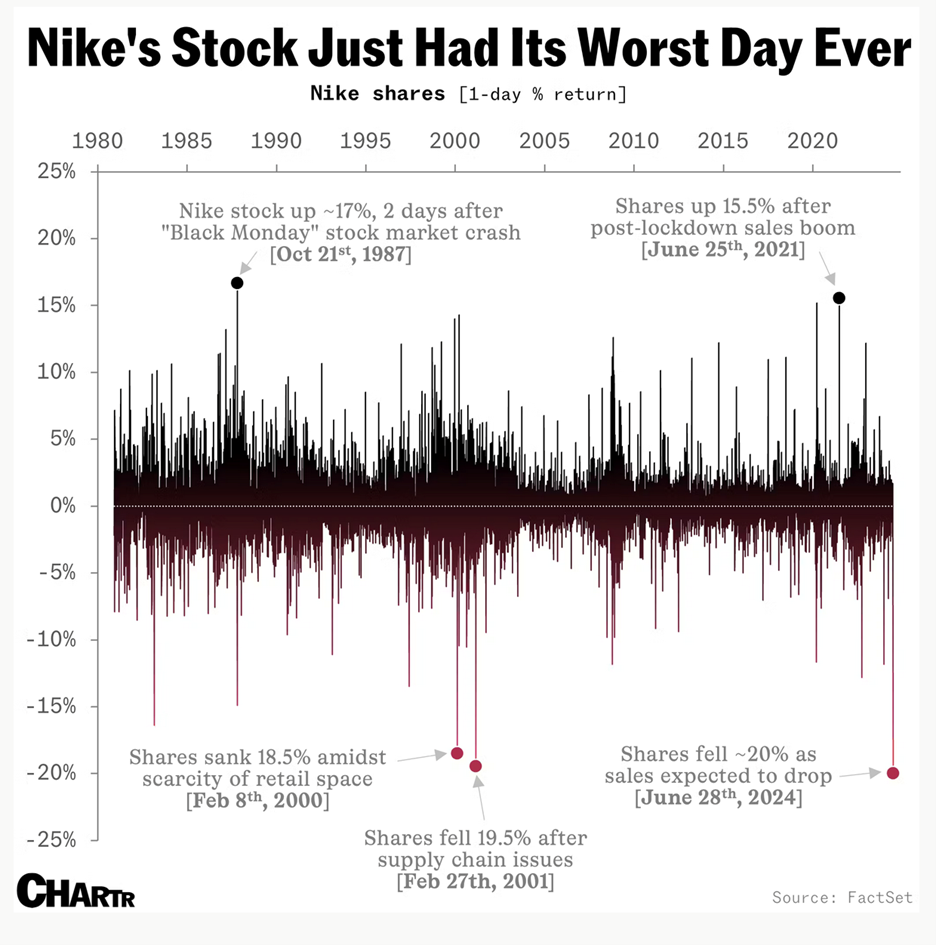 Nike’s Stock fell on 20% on Friday (Sherwood News) 📊