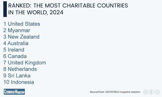 Ranked: The Most Charitable Countries in the World, 2024 (CEOWORLD) 📊