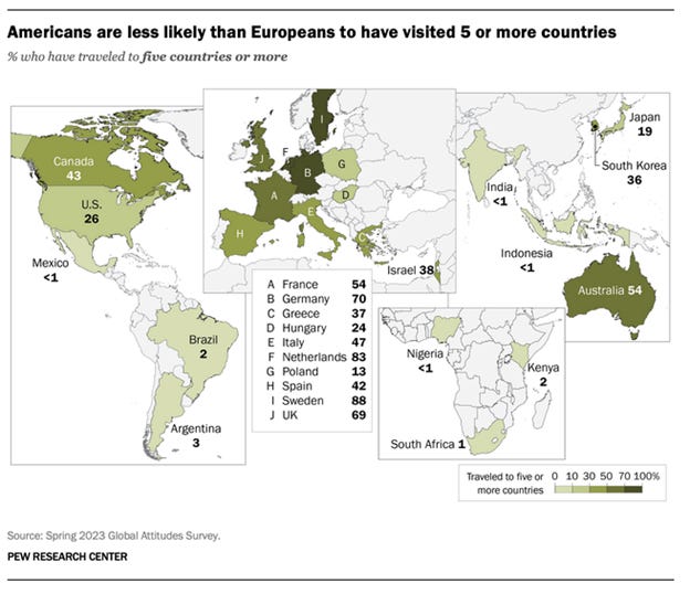 Americans who travel internationally are more knowledgeable about foreign affairs and favor a more active foreign policy (Pew Research)📊.