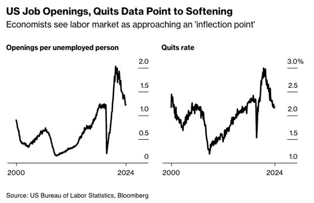 US Labor Market Shows Signs of Losing Steam, Putting the Fed on Alert (Bloomberg🔒) 📊