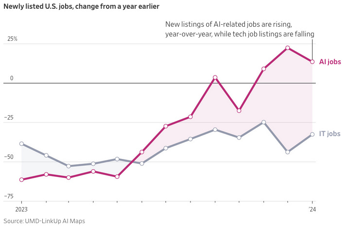 AI Talent Is in Demand as Other Tech Job Listings Decline (WSJ🔒) 📊