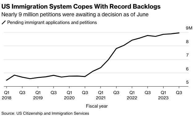 Cities Looking to Fill Jobs with Migrants Face 9 Million Application Backlog (Bloomberg🔒) 📊