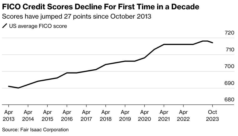 National Average FICO Score Drops for First Time in Decade (Bloomberg🔒) 📊
