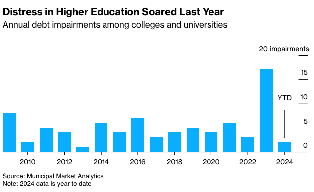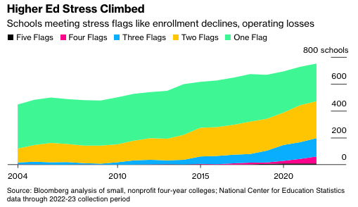 Distress Soars at Small US Colleges as Enrollment Declines (Bloomberg🔒) 📊